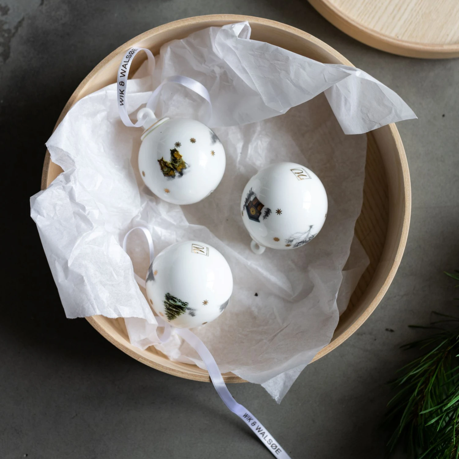 Cette petite boule de Noël Julemorgen de Wik & Walsøe aux jolis motifs hivernaux sera le détail parfait pour votre sapin.